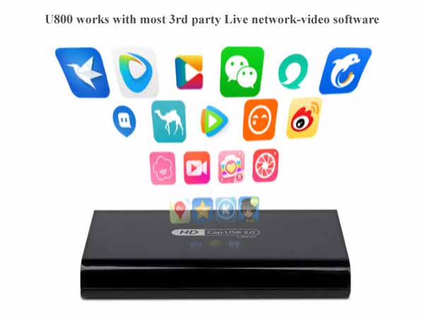 U800 works with most 3rd party live network-video software such as OBS and XSplit. Allows live video