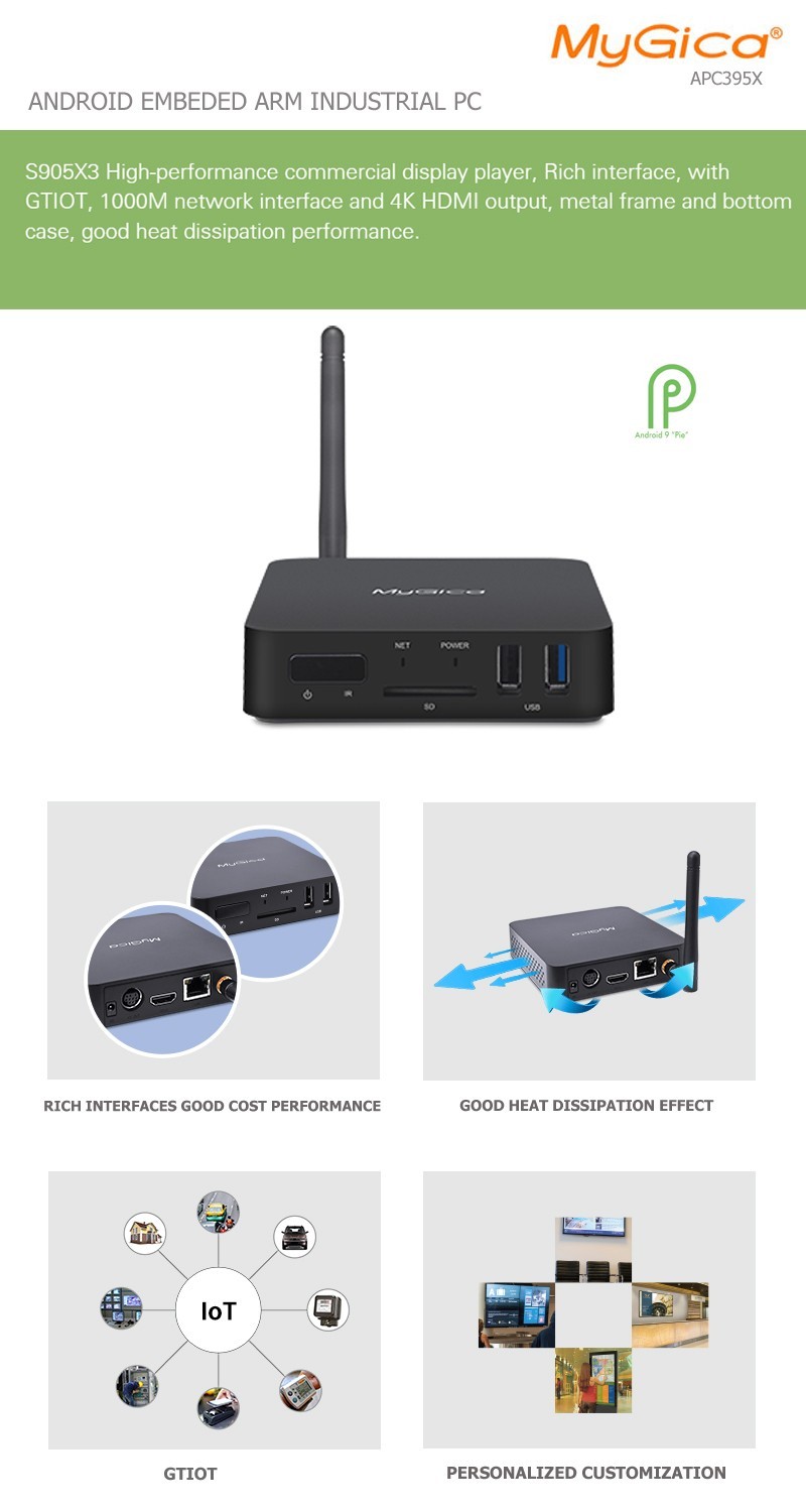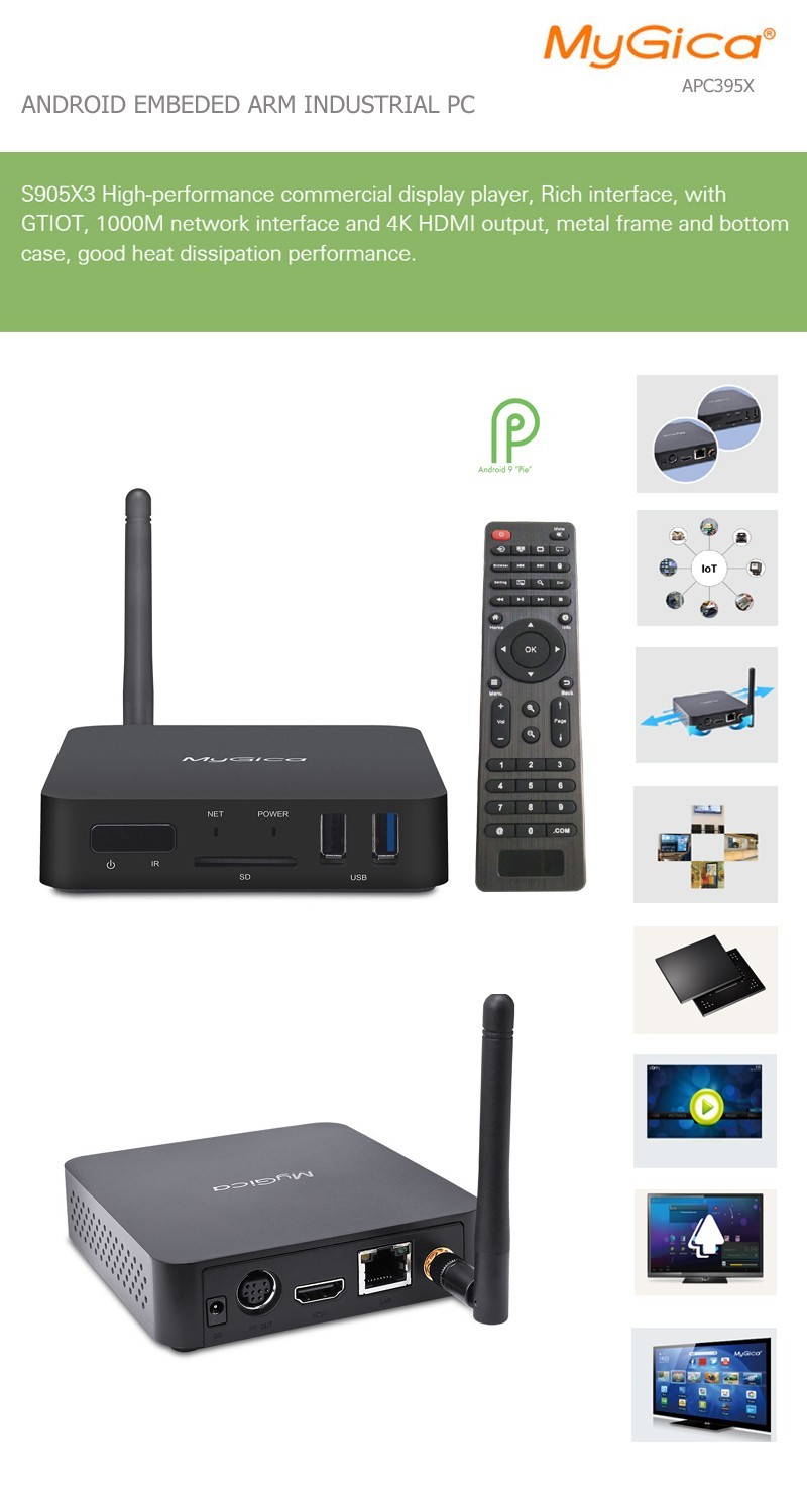 - MyGica APC395X3 is a high-performance and compact Android PC designed for industrial, commercial, and enterprise applications, designed to run 24/7 with rugged use.